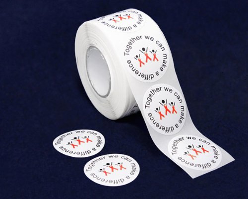 These 2 inch round ribbon stickers are white and have the words, "Together We Can Make A Difference" with our red ribbon people. Great for putting on your donation letters or envelopes. Packaged 500 red ribbon stickers per roll. Read more customer reviews ...